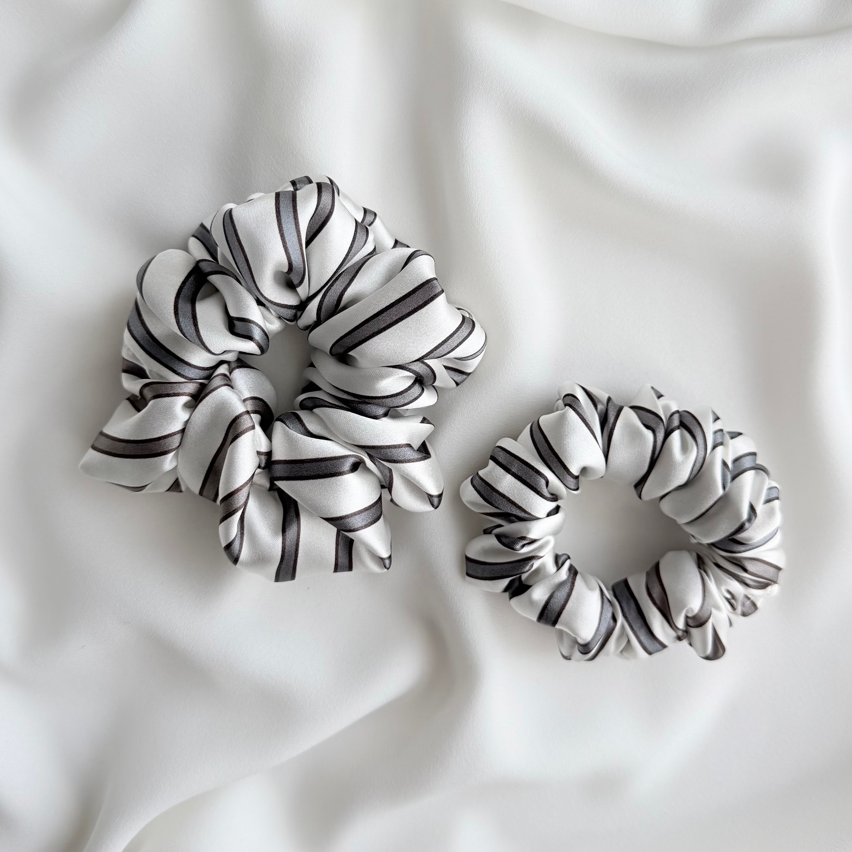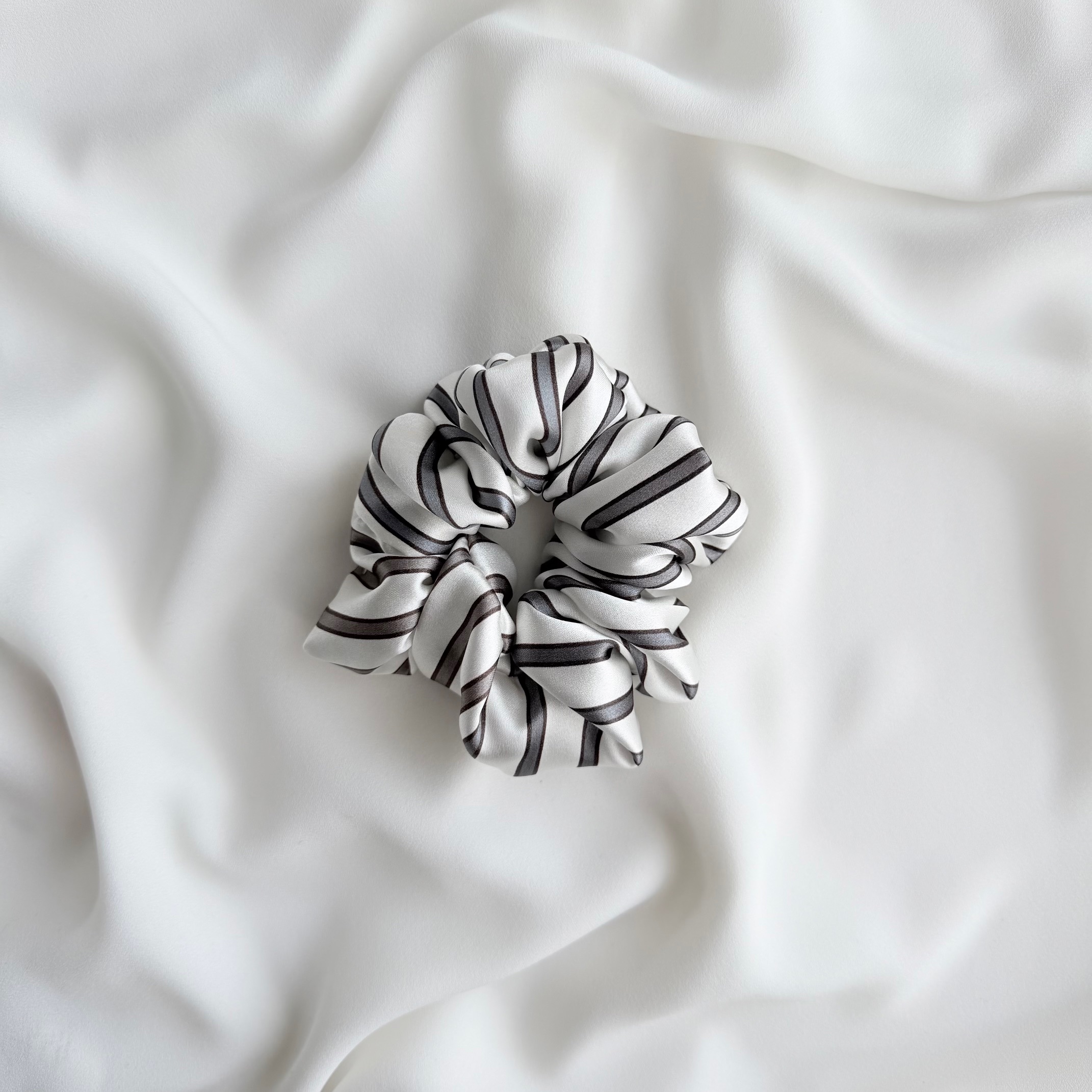 ŠILKINĖ PLAUKŲ GUMYTĖ – PILKA DRYŽUOTA
